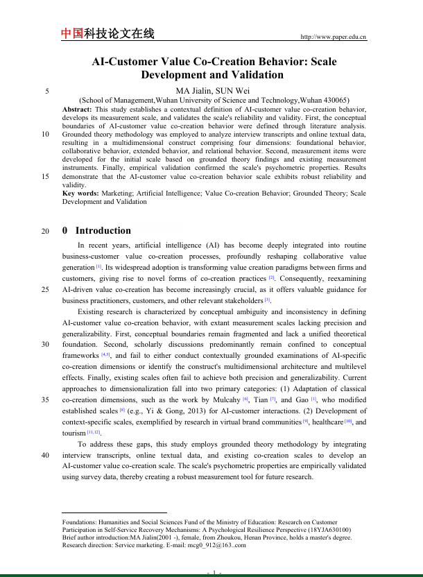 【Management】AI-Customer Value Co-Creation Behavior: Scale Development and Validation